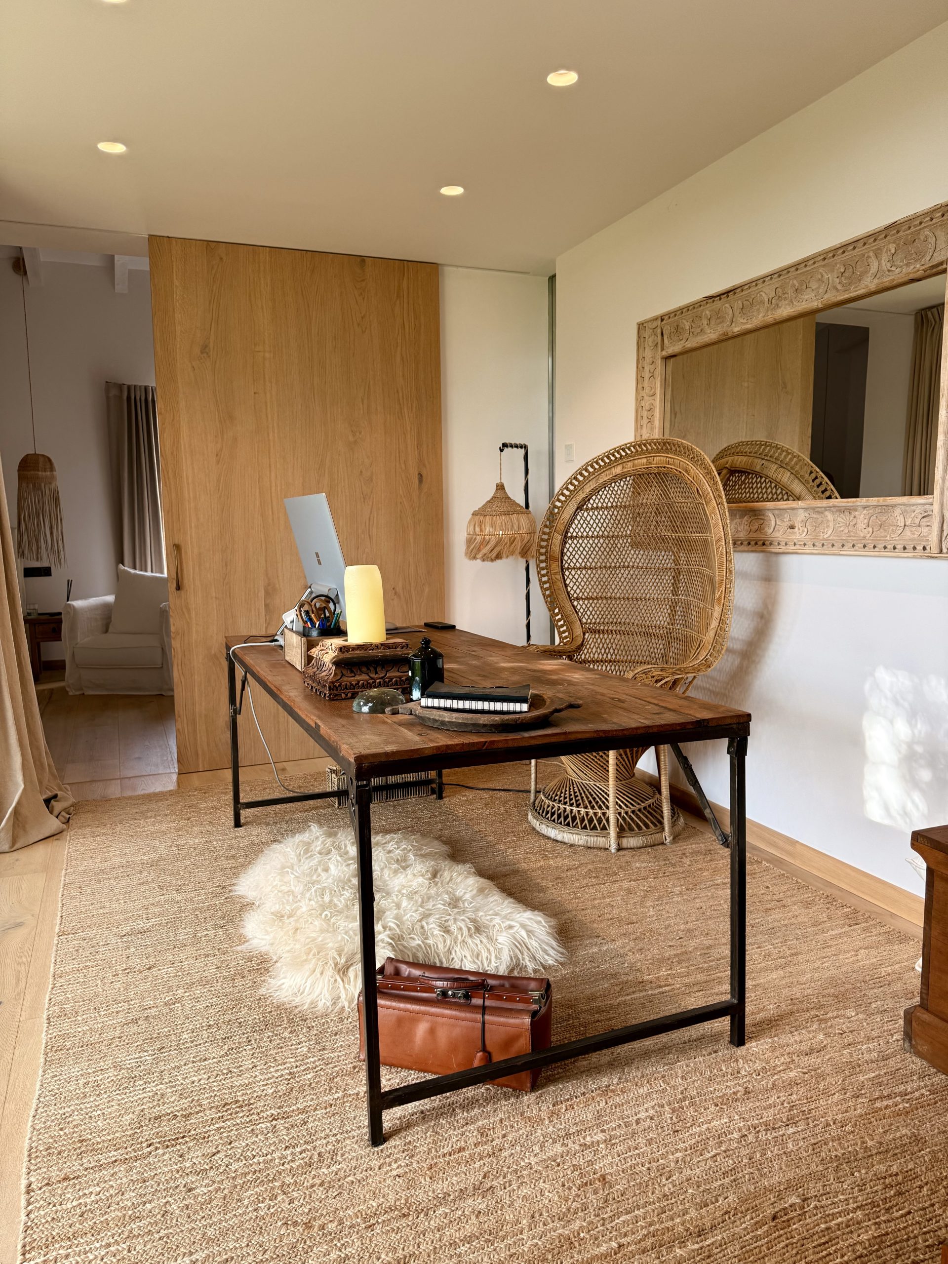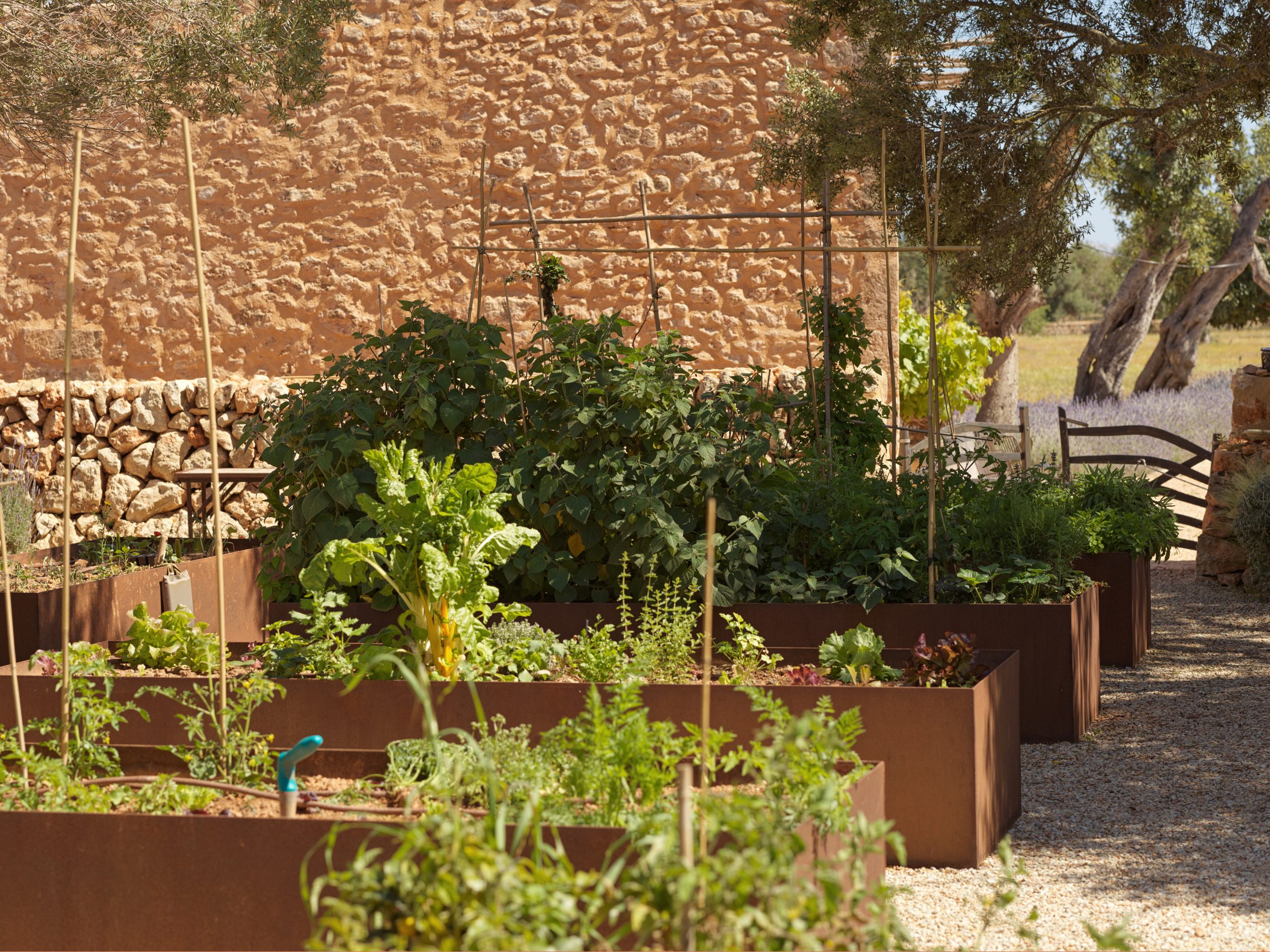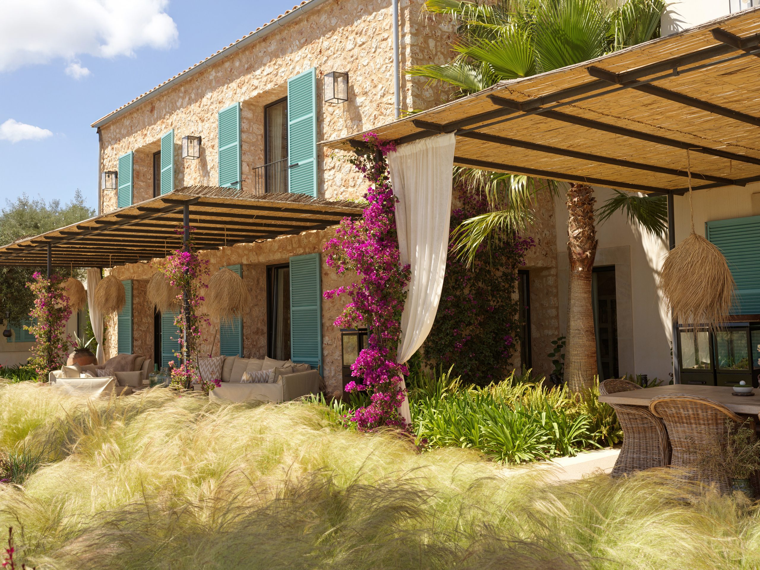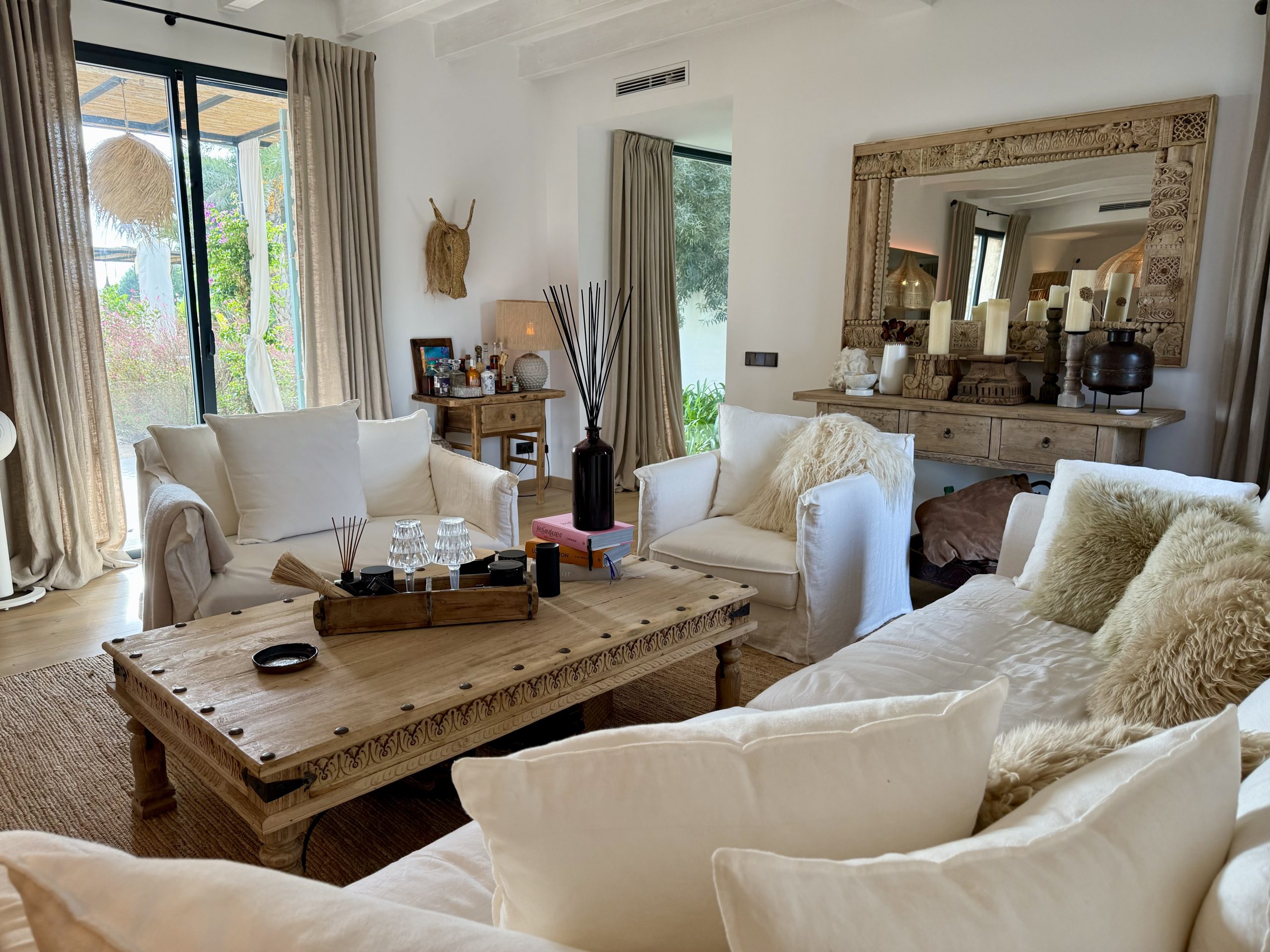 The outdoor areas have been masterfully designed by one of Mallorca’s leading landscape architects. The gardens feature a harmonious mix of Mediterranean and tropical planting, shaded seating areas, fruit orchards, vegetable gardens with automated irrigation, and curated spaces for relaxation. A heated infinity pool, pétanque court, fire pit, and multiple chill-out zones create a sanctuary of leisure and calm.