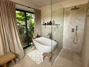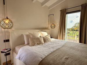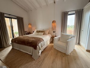 Completed in 2022, the main residence blends natural stone, handcrafted finishes, and contemporary architecture. The result is a sophisticated, light-filled home where every room opens onto the surrounding landscape. With 460 m² of living space, the house features four spacious bedroom suites, each with its own bathroom, private terrace or balcony, and panoramic views across the countryside.